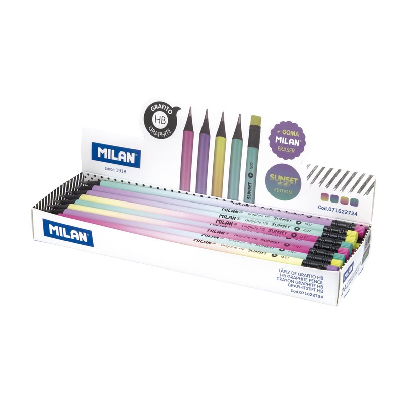 Caja expositora 24 lápices de graphite HB con goma, series Sunset