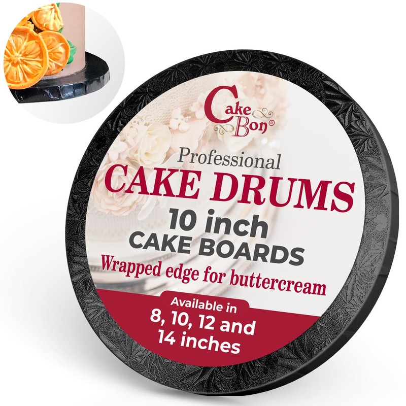 Cakebon Cakebon Cake Boards - Sturdy 1/2 Thick Drums - 10 Inch Professional Fully Wrapped Edges Black 3-Pack