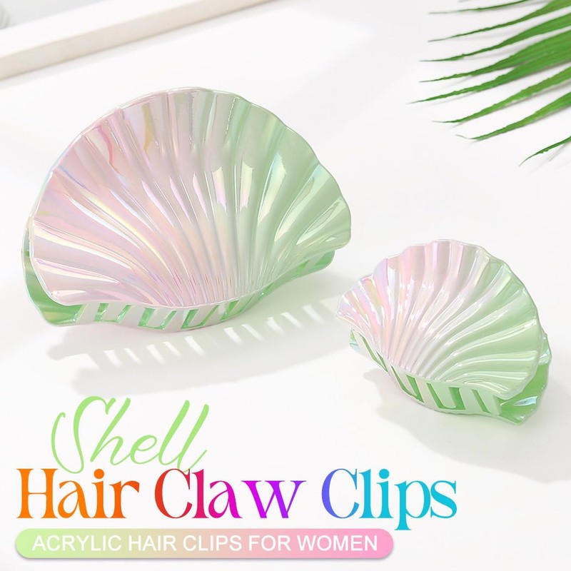 - Seashell claw clips for women- Pair with tousled waves for a beach-ready look. The gradient accents shimmer in sunlight, enhancing your seaside aesthetic.