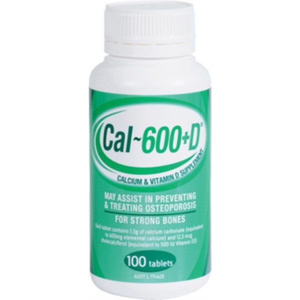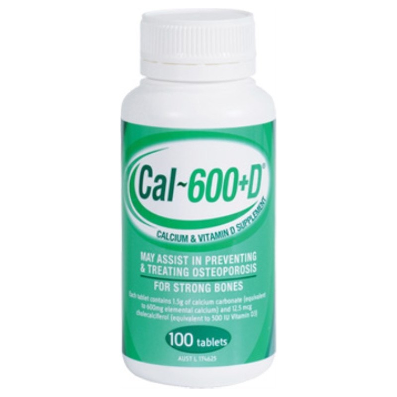 Each film coated tablet of Cal-600+D contains 1500mg of calcium carbonate (equivalent to 600mg of elemental calcium) & 500 I.U. of Vitamin D3 to assist in the absorption of calcium. Cal-600+D tablets are equivalent to Ostelin Vitamin D & Calcium tablets (Ostelin Reg TM Sanofi-Aventis Australia Pty Ltd) and Caltrate with Vitamin D tablets (Caltrate Reg TM Wyeth Holdings Corp).