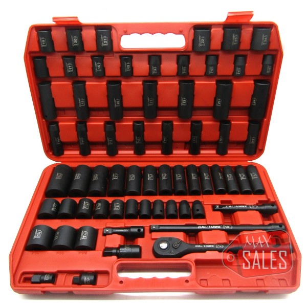 Cal-Hawk 1/2" Drive Deep & Shallow Impact Socket Adaptor Reducer 65pc Set SAE & Metric
