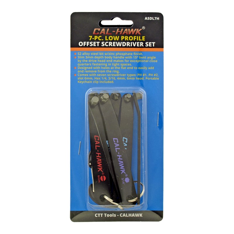 Cal-Hawk 7 PC Low Profile Offset Screwdriver Set with Keychain Loop - ASDL7H