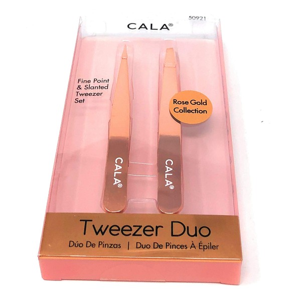 - CALA - juego de pinzas para depilar, punto fino, punta angulada, 2 piezas (color oro rosa)
