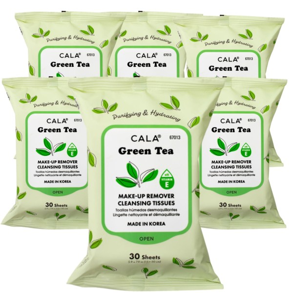 CALA Makeup Remover Cleansing Tissues: Green Tea (30 Sheets) - Antioxidant-rich, Hydrating Wipes For A Smooth, Radiant Complexion, Gentle On All Skin Types (180 count, Pack of 6)
