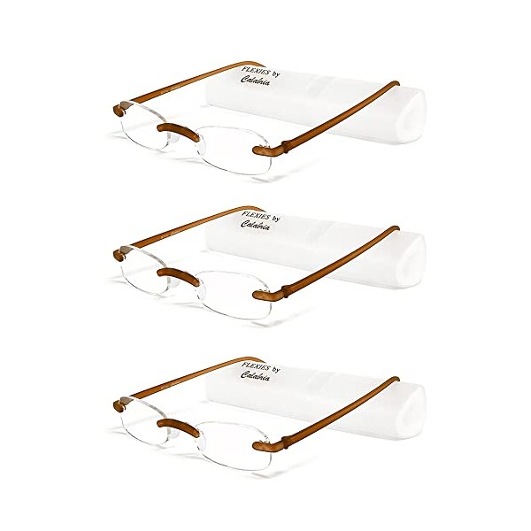 Calabria 714 Flexie Oval Rimless Reading Glasses +2.00 Root Beer (3pack) Men/Women Bendable Readers Flexible TR90
