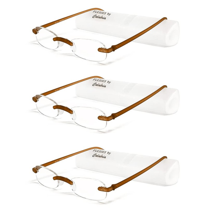 Calabria 714 Flexie Oval Rimless Reading Glasses +2.00 Root Beer (3pack) Men/Women Bendable Readers Flexible TR90