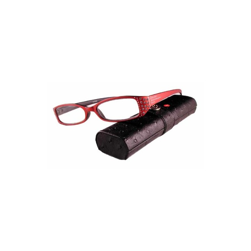 Calabria 834 Dazzle Reading Glasses +2.25 Sunset Red Women Rhinestone Crystal Bling Single Power Readers Stylish Hard Case