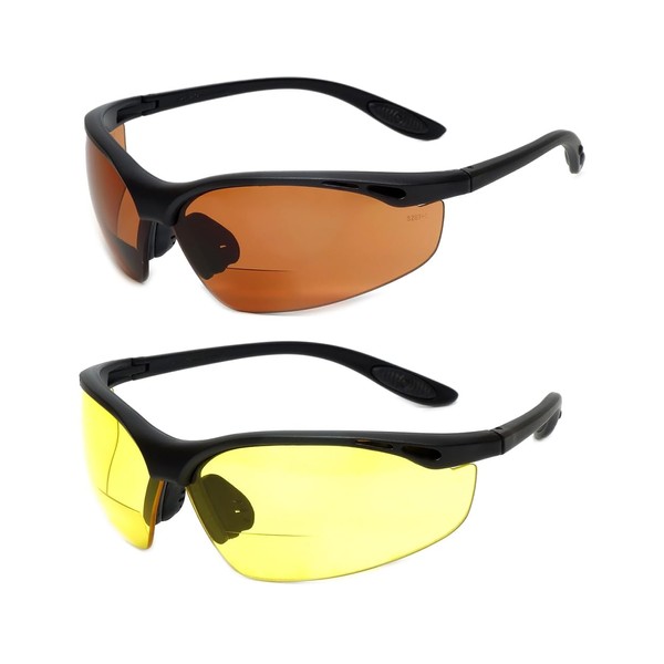 Calabria 91348 2 Pack Bulk Bifocal Safety Glasses +1.50 Copper/Yellow Men Women Wraparound Eye Protection Protective Eyewear