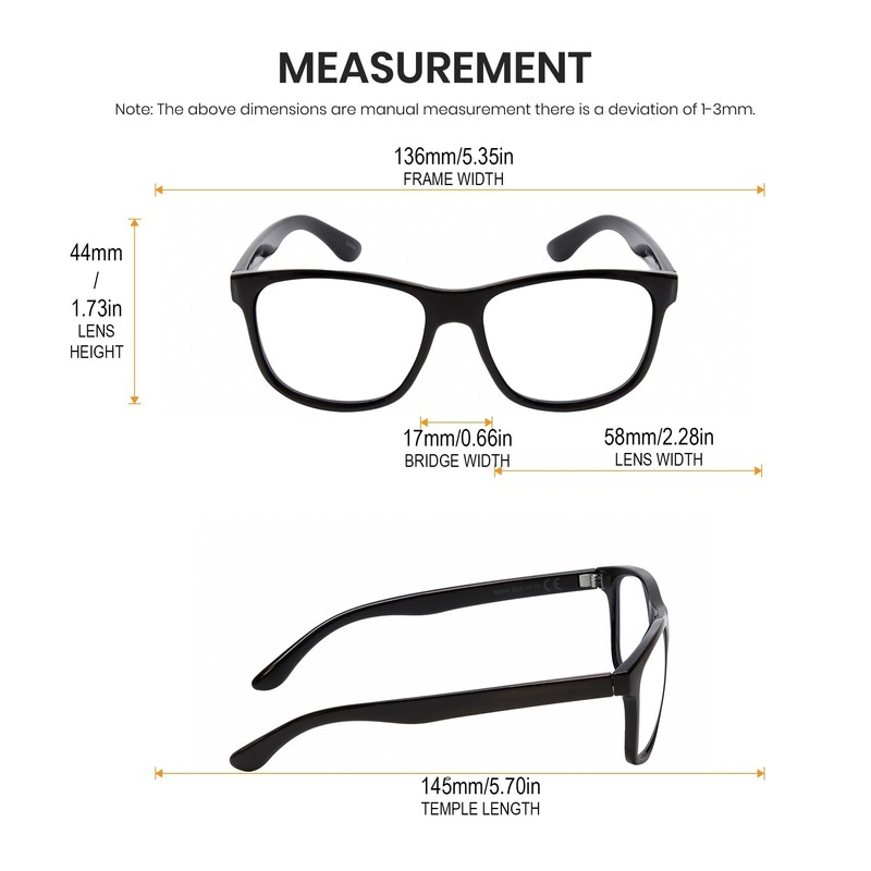 - Dimensions and Convenient Slip-In Case Included: These glasses are designed for comfort and an accurate fit, with a lens width measuring 58mm (2.28 inches), bridge width at 17mm (0.67 inches), temple length of 145mm (5.71 inches), frame width of 136mm (5.35 inches), and lens height at 44mm (1.73 inches). Each pair comes with a soft slip-in case for convenient storage and protection when not in use, making it a practical everyday accessory.