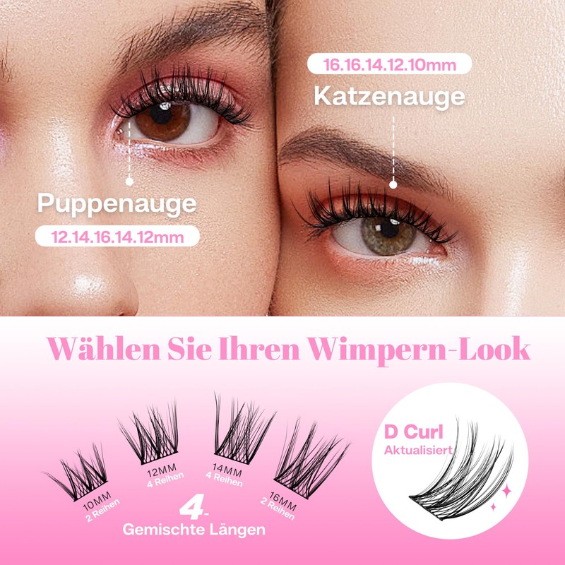 • Easy to use: bend your natural eyelashes with an eyelash curler before application. Use tweezers to gently remove the eyelash clusters from the palette. Apply a light layer of glue to your natural eyelashes or to the eyelash cluster tape and finally apply the eyelash clusters at the base of your natural eyelashes according to your eyelash card.