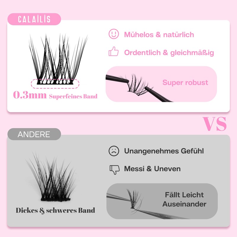 • Super thin band: What distinguishes this eyelash cluster band from conventional eyelash bands is that it consists of only a single wire, which is very soft like a feather and is comfortable on the eyes, so you can hardly feel it.