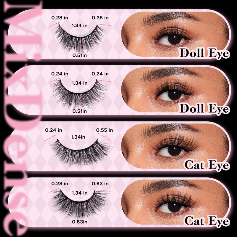 - [Diverse Densities & Styles Available] -- The 20-pair package fake lashes come in various eye shapes (Natural Eye, Cat Eye, Doll Eye) and different density, with options for natural and full volumes available in individual or 2/4-mixed packs for your selection so as to match any occasion.