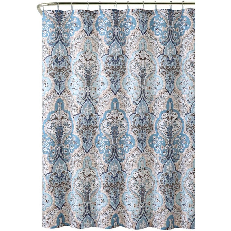 Calais Dobby Fabric Shower Curtain: iKat Floral Design (Blue-Brown-White) by Victoria Classics