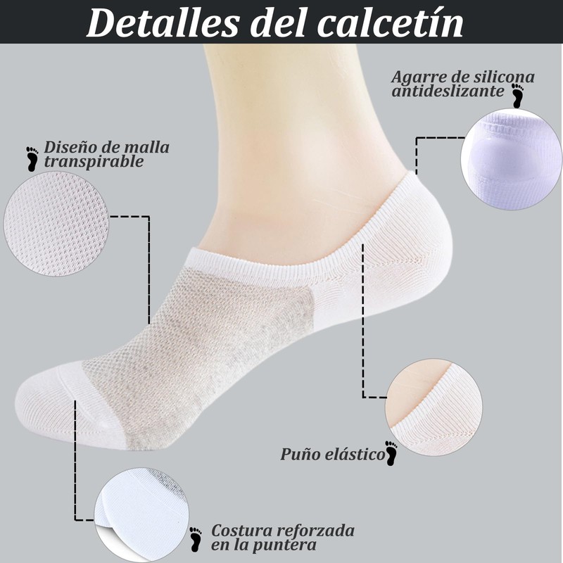 - 【Almohadilla de silicona antideslizante】: el talón de los calcetines cortos hombre tiene un diseño antideslizante de silicona de grano grande. El diseño elástico de la abertura del calcetín no estrangulará tu empeine. Ya sea que estés corriendo o caminando, puedes evitar que el talón se caiga y sujetarlo firmemente. Mantenlo sobre tus pies.
