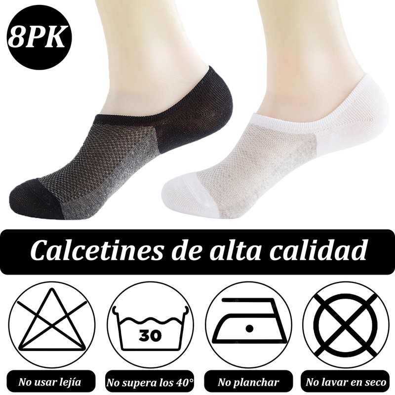 Calcetines Invisibles hombre, 8 Pares de Tines Cortos Hombre, Calcetas Deportivas para Hombre, Tines Hombre Algodon con Silicona Antideslizante y Duradero de Calcetines Transpirables