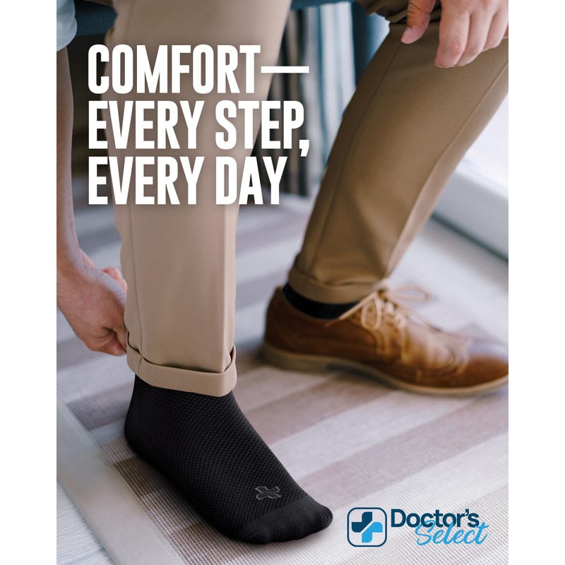 • Comodidad y alivio para pies y tobillos hinchados: los calcetines diabéticos Doctor's Select para hombres y mujeres tienen un diseño holgado que los hace fáciles de usar en pies y tobillos hinchados. La parte superior elástica permite un buen flujo sanguíneo sin deslizarse hacia abajo y no crea marcas de calcetines feas.