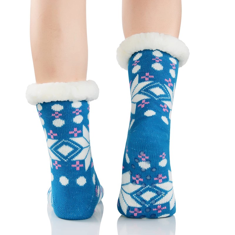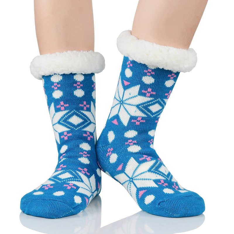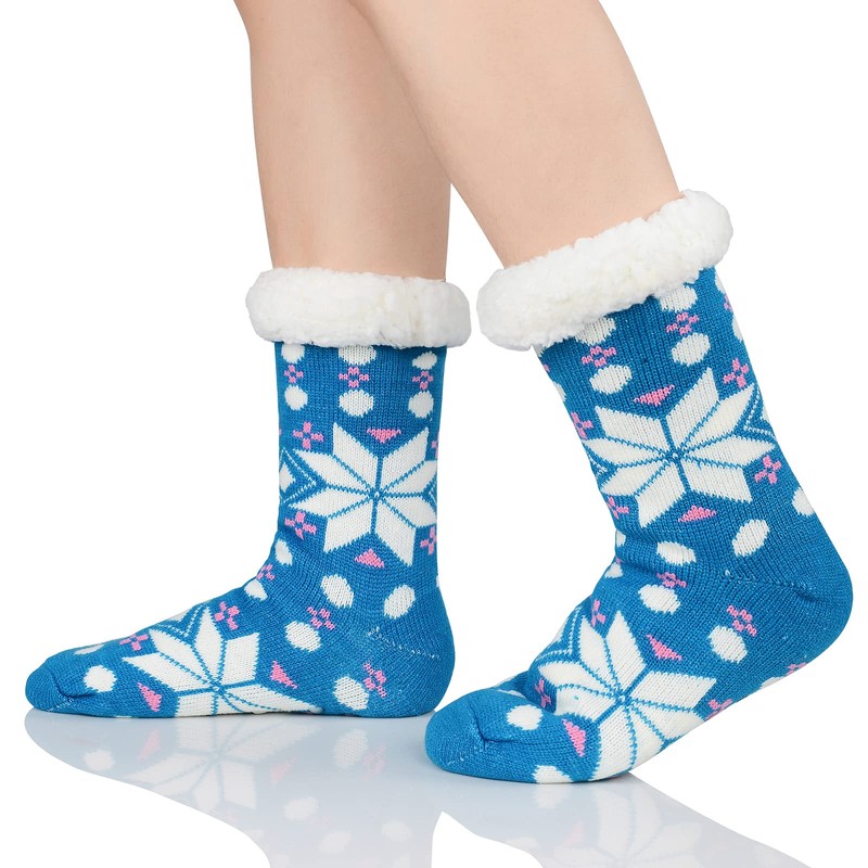 Calcetines peludos para mujer, calcetines de casa, calcetines de invierno cálidos y peludos, calcetines atléticos para Navidad, azul, (Blue Snow), Talla única