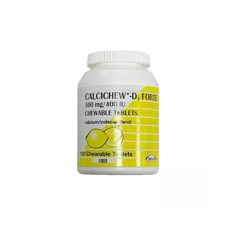 Calcichew D3 100 Chewable Tablets are a calcium and vitamin D supplement that helps support bone health and treat or prevent calcium and vitamin D deficiencies. These chewable tablets are designed for individuals who may need extra calcium and vitamin D due to age, dietary intake, or specific medical conditions. Each tablet contains 500 mg of calcium and 400 IU (10 micrograms) of vitamin D3 , which work together to promote healthy bones and teeth, while also supporting muscle function.