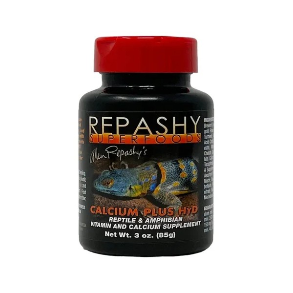 Descripción Limpia: Repashy Calcium Plus Hyd es un suplemento de calcio con vitaminas en polvo diseñado para reptiles y anfibios que no están expuestos a suficiente luz natural o UVB. Este producto proporciona una mezcla equilibrada de nutrientes esenciales para mantener la salud óptima de su mascota.