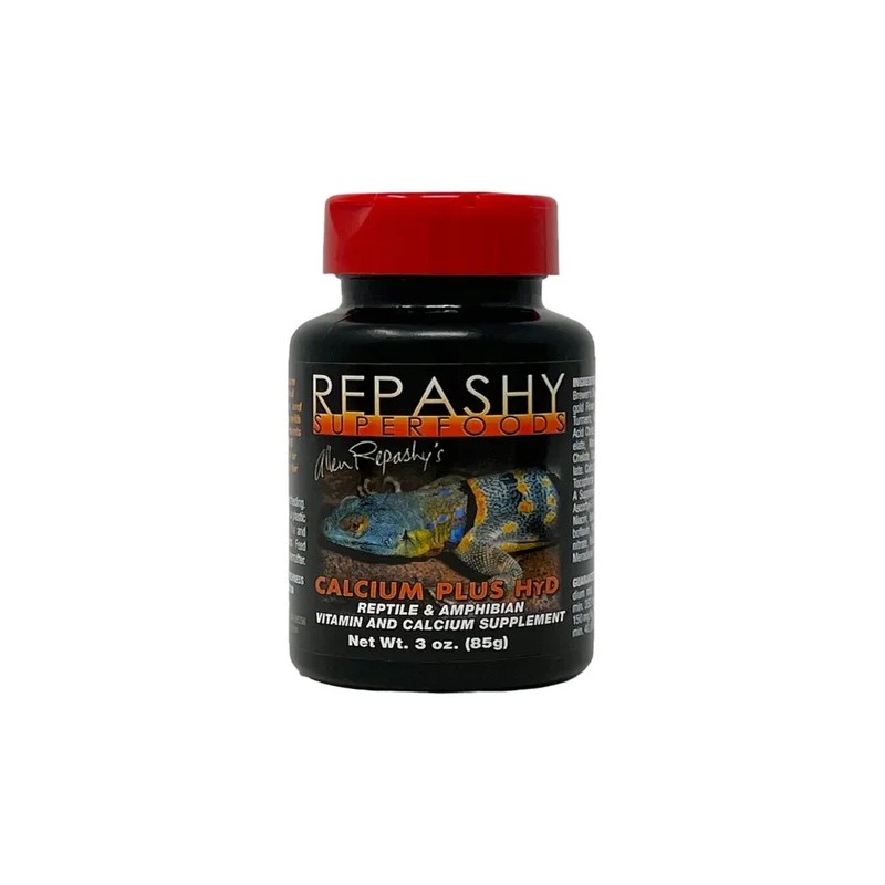 Descripción Limpia: Repashy Calcium Plus Hyd es un suplemento de calcio con vitaminas en polvo diseñado para reptiles y anfibios que no están expuestos a suficiente luz natural o UVB. Este producto proporciona una mezcla equilibrada de nutrientes esenciales para mantener la salud óptima de su mascota.