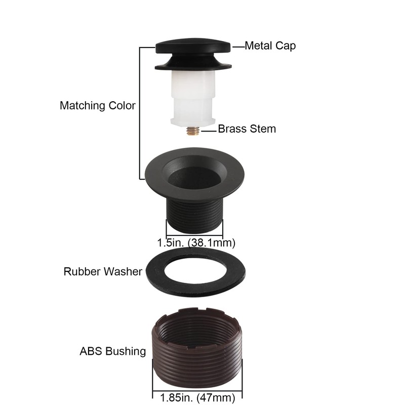 CalcMetal Tip-Toe Bathtub Drain Stopper with ABS Plastic Bushing, Fits in 1-1/2 Inch or 1-3/8 Inch Inner, Easy to Install, Matte Black