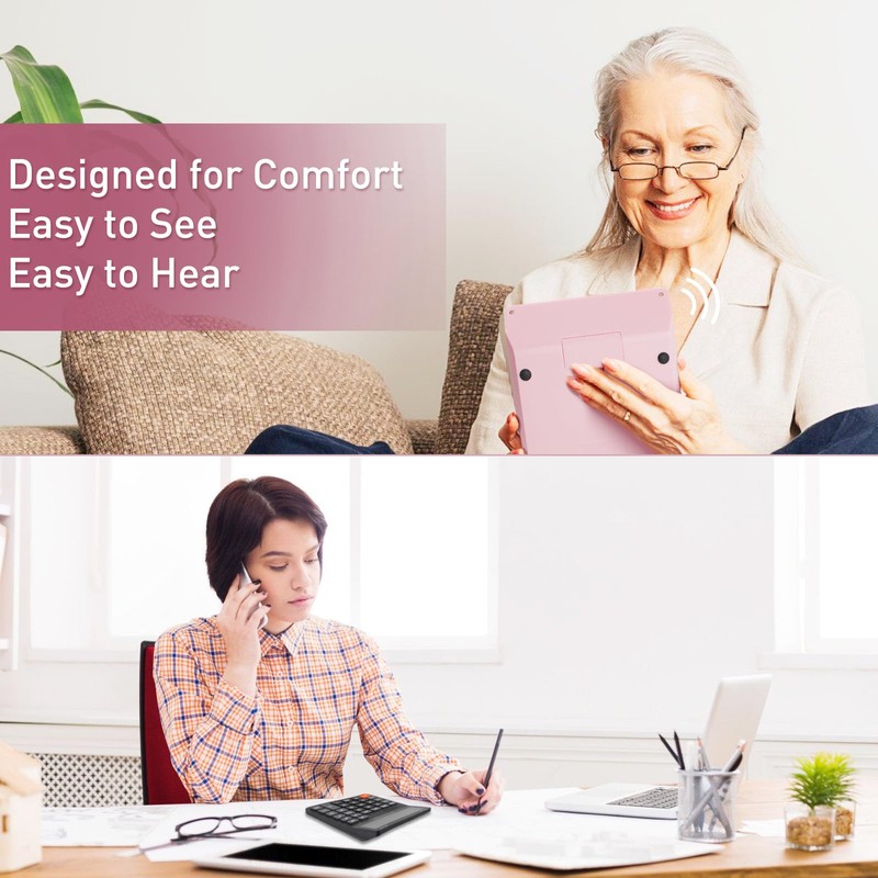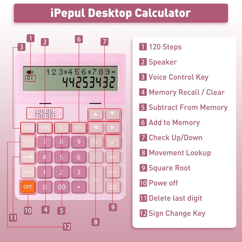 Calculators Desktop,Ipepul Talking Calculator with 2-line 12-Digits Large LCD Display and Large Button,4 Function Calculator for Business,Office,Store,School (Pink)