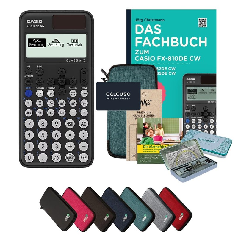 - Contents: Casio FX-810DE CW, WYNGS protective case, WYNGS screen protector, technical book in German for FX-810DE CW by Calcuso, Math Fritz learning CD in German, premium geometry set, extended warranty from Calcuso.