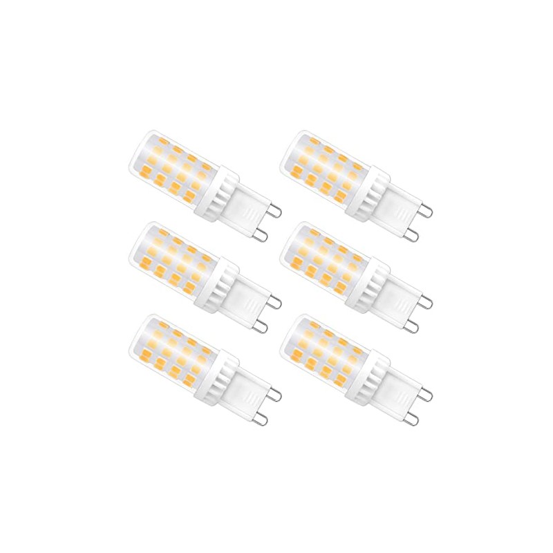 - G9 5W LED6 pcs*G9 5W LED light, standard G9 double pin shape, 450 lumens, input voltage 220V-240V. ?18*50MM, slightly larger than traditional halogen bulbs, please check whether the size matches before purchasing.
