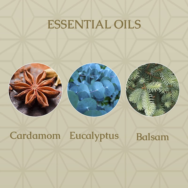 Cardamom, Eucalyptus and Balsam Essential Oils create an intricate, harmonious