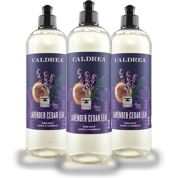 Caldrea Dish Soap, Biodegradable Dishwashing Liquid made with Soap Bark and Aloe Vera, Lavender Cedar Leaf, 16 oz , 3 Pack