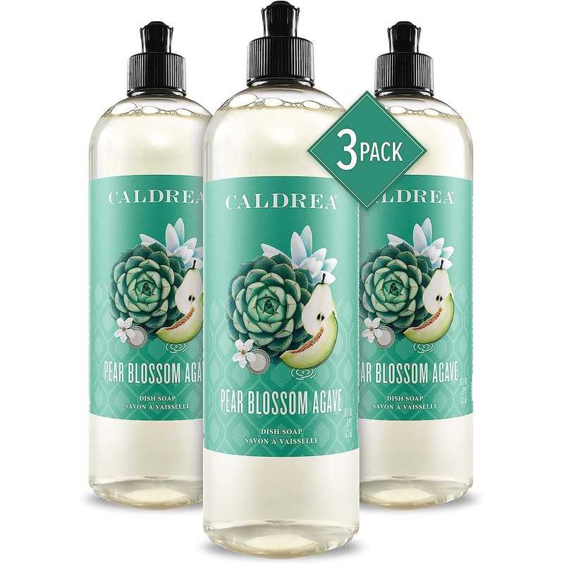 Caldrea Pear Blossom agave dish soap is rich, fragrant and effective. Ozone, Melon, apple and lemon top notes leave you wanting more, while lemon and jasmine essential oils create an intricate, harmonious fragrance. Liquid dish Soap cuts grease and keeps dishes bright and clean. With ingredients like natural degreaser soap Bark for tough pans and Aloe Vera for soft hands, This dish soap rinses clean and is biodeg