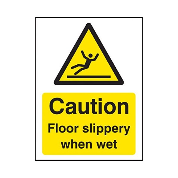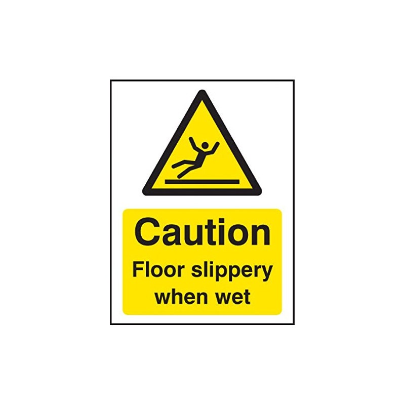 Caledonia Signs 14287A Caution Floor Slippery When Wet Sign, 100 mm x 75 mm, Rigid Plastic