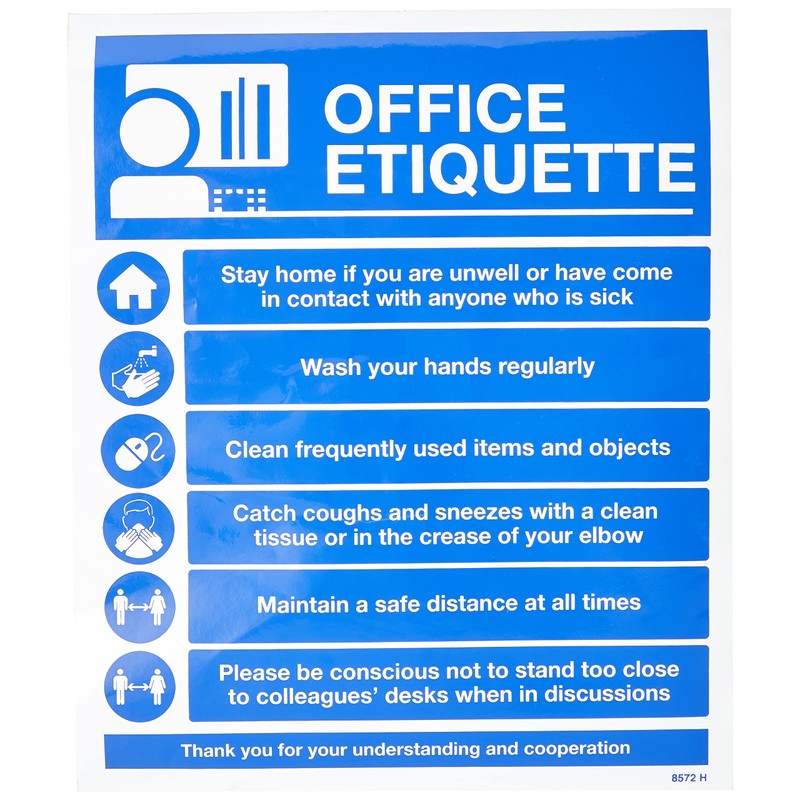 - Safety sticky label to help display and advise of steps to take to mininmise the impact of coronavirus/COVID19. Use as part of your workplace control measures during the COVID19 outbreak