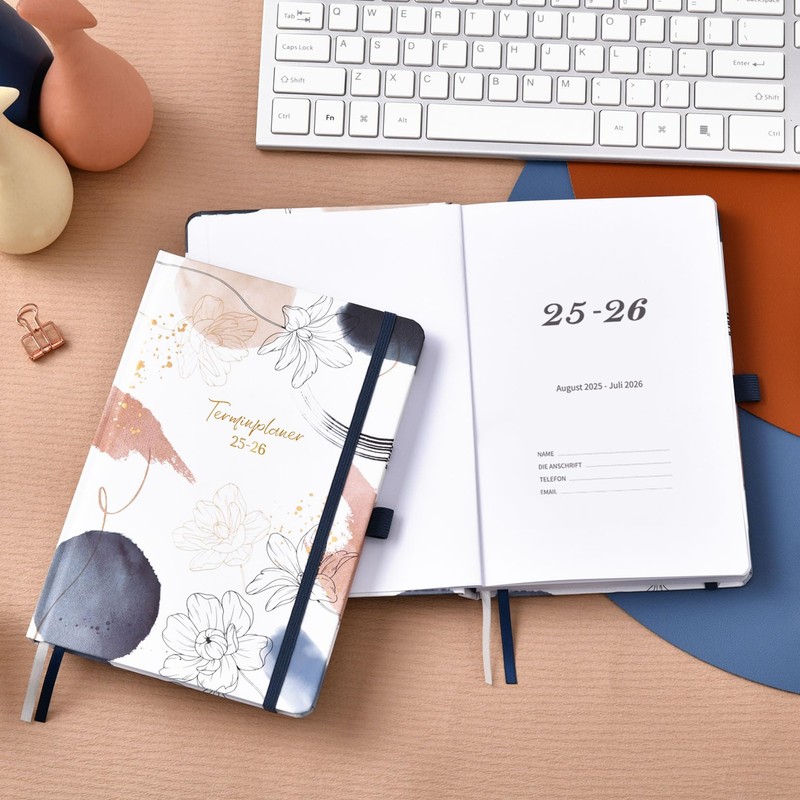 - Premium quality – The A5 diary 2025-2026 comes with a sturdy hard cover with a shiny print, 2 ribbon page markers and elastic closure.
