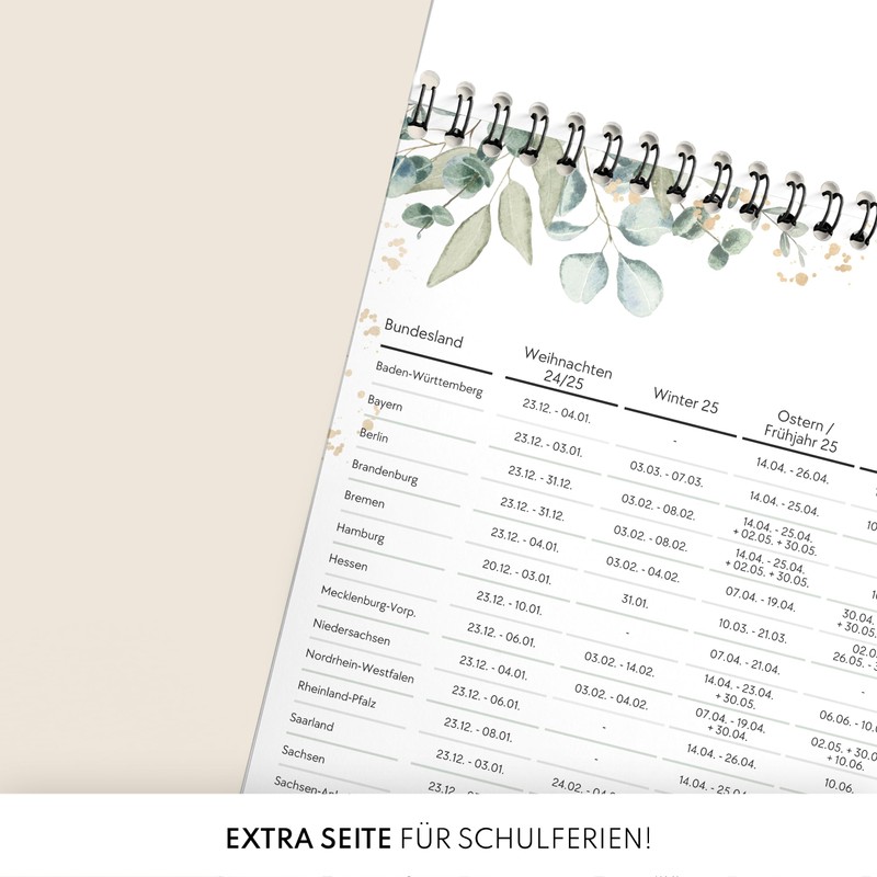 - Holiday appointments – Our wall calendar comes with an extra page for the holiday calendar of all school holidays in Germany (holiday planning!)