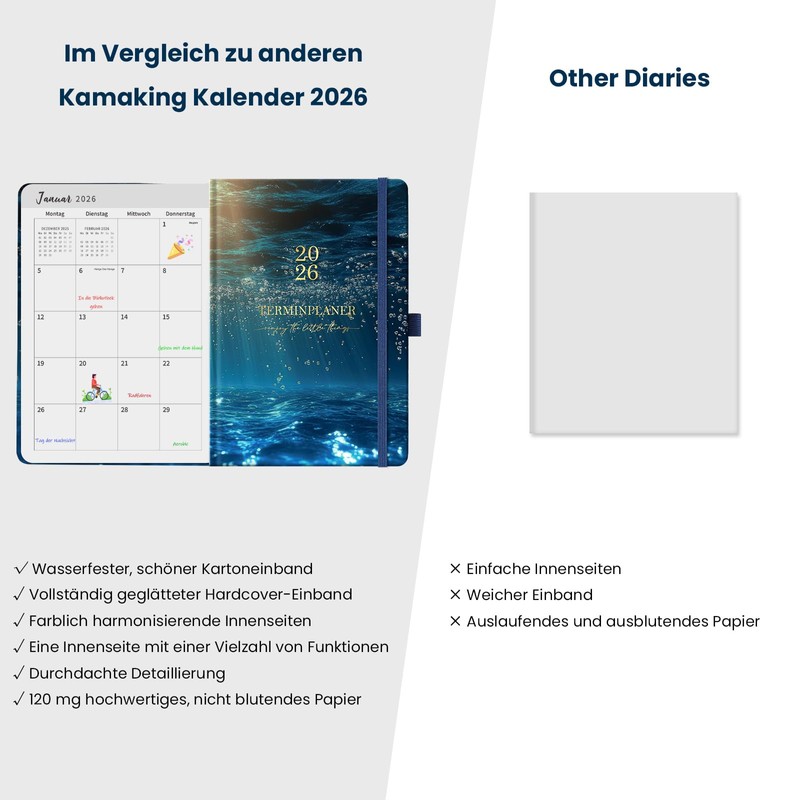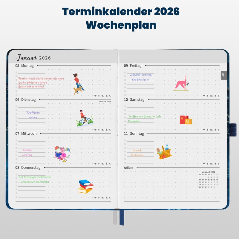 - Luxury paper & full surcharge - high-quality 120 g paper and 180° opening - write like in a book in the 2026 A5 calendar!