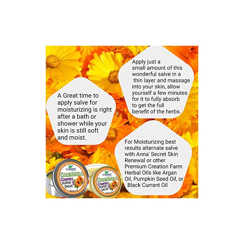 Calendula Comfrey Super Salve, Large 4 oz jar by Creation Farm Herbal Balm Salves Moisturizer Ointment No Gluten, No Soy, No Parabens, No GMO Herbs Grown and Made in USA Comforts Eczema, Psoriasis