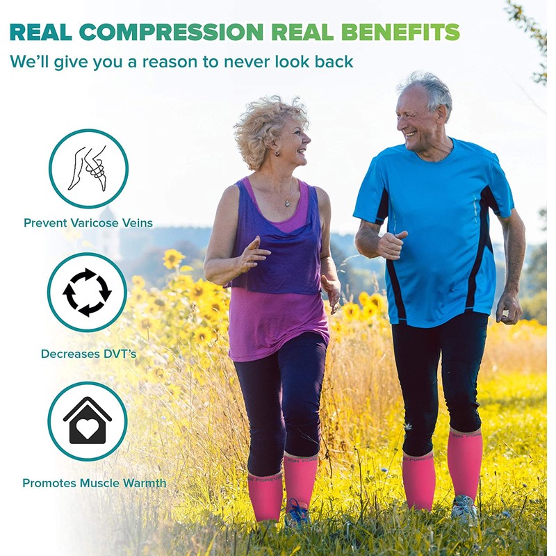 - PROFESSIONAL GRADE COMPRESSION - When it comes to compression gear, not all are created equal. Some don't fit right, and some don't work right, but with Run Forever Sports, you'll be sure to get a quality fit with a true graduated compression strength of 20-25mmHg, which will help improve performance while alleviating leg pain and swelling.