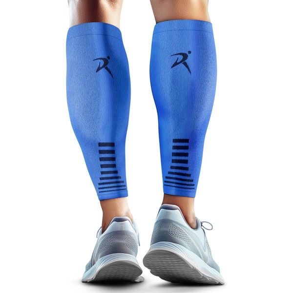 Rymora Calf Compression Sleeves Men Women Shin Splints Running (Pair) (Blue) (M)