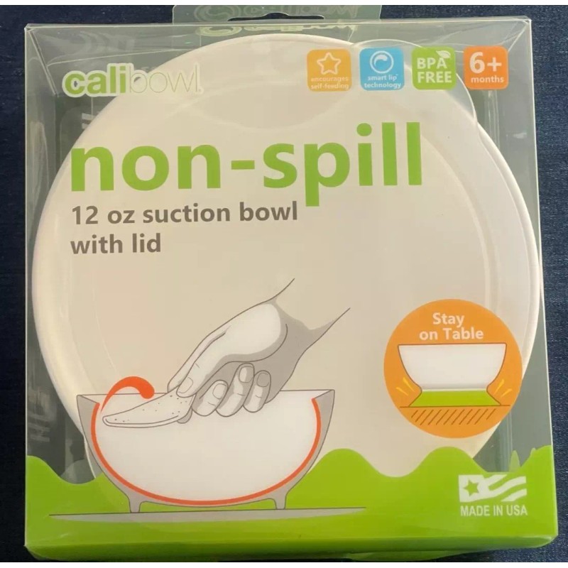 Calibowl Non-Spill Toddler Suction-Base Bowl with Lid, 12-Ounce White/Green