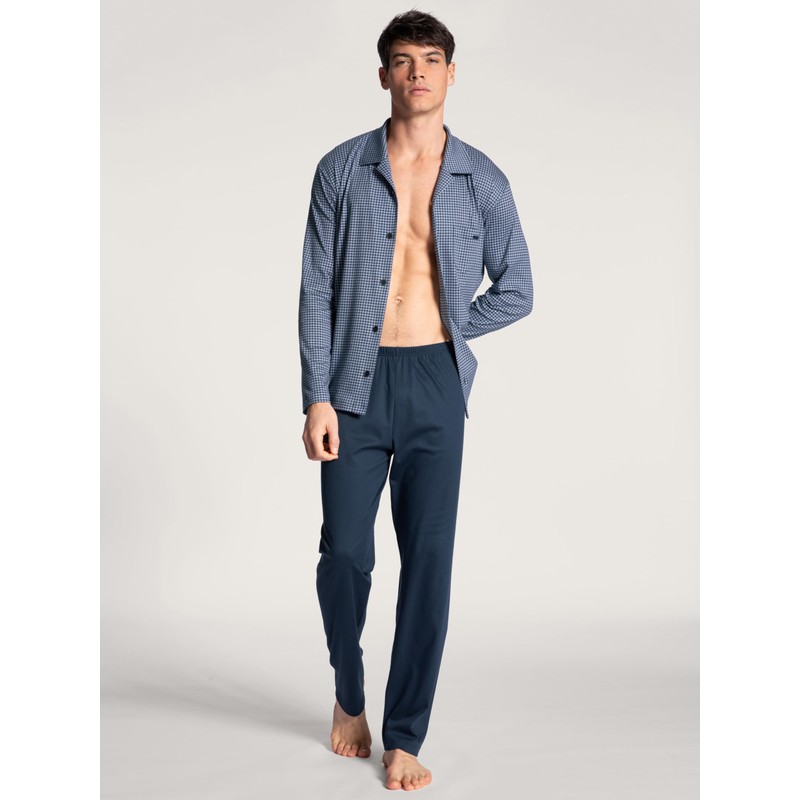 CALIDA Relax Choice Men's 100% Supima Cotton Buttoned Pyjamas with Fabric-Covered Elastic Waistband, Indigo mood