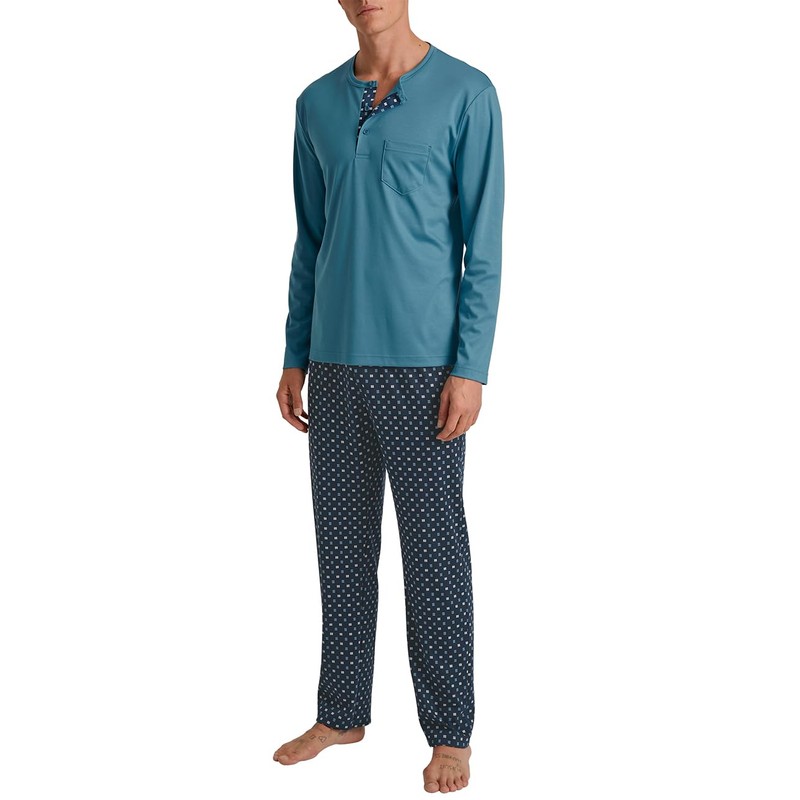 CALIDA Relax Choice Men's 100% Supima Cotton Long Pyjamas with Fabric Covered Elastic Waistband, Storm Blue
