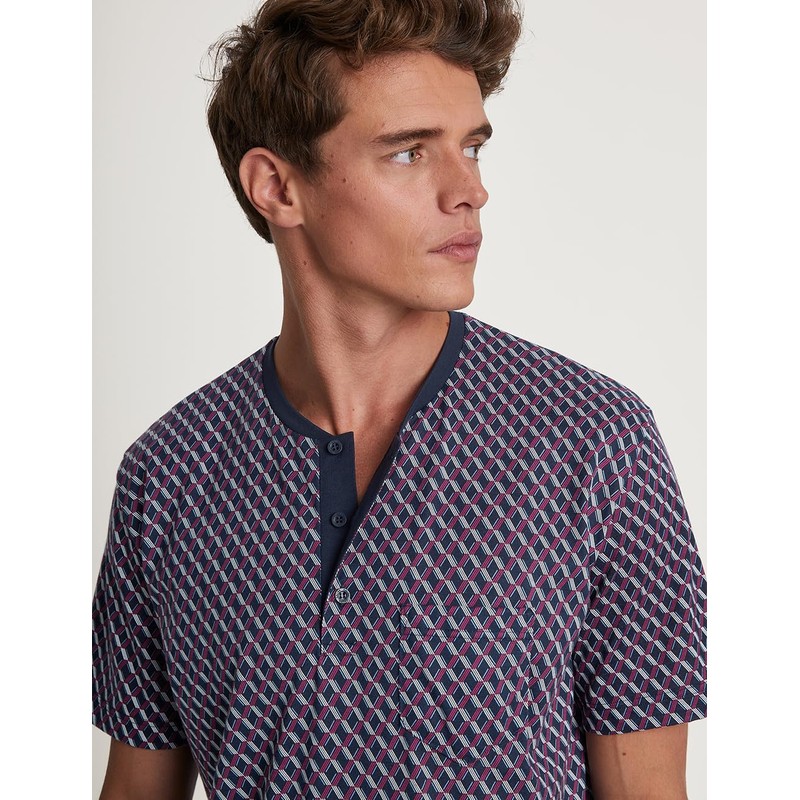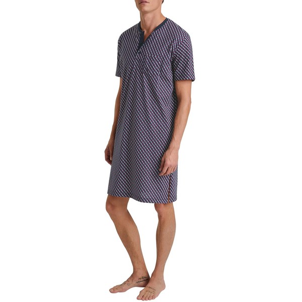 CALIDA Relax Imprint Men's 100% Cotton Button Down Nightdress, Mars Red