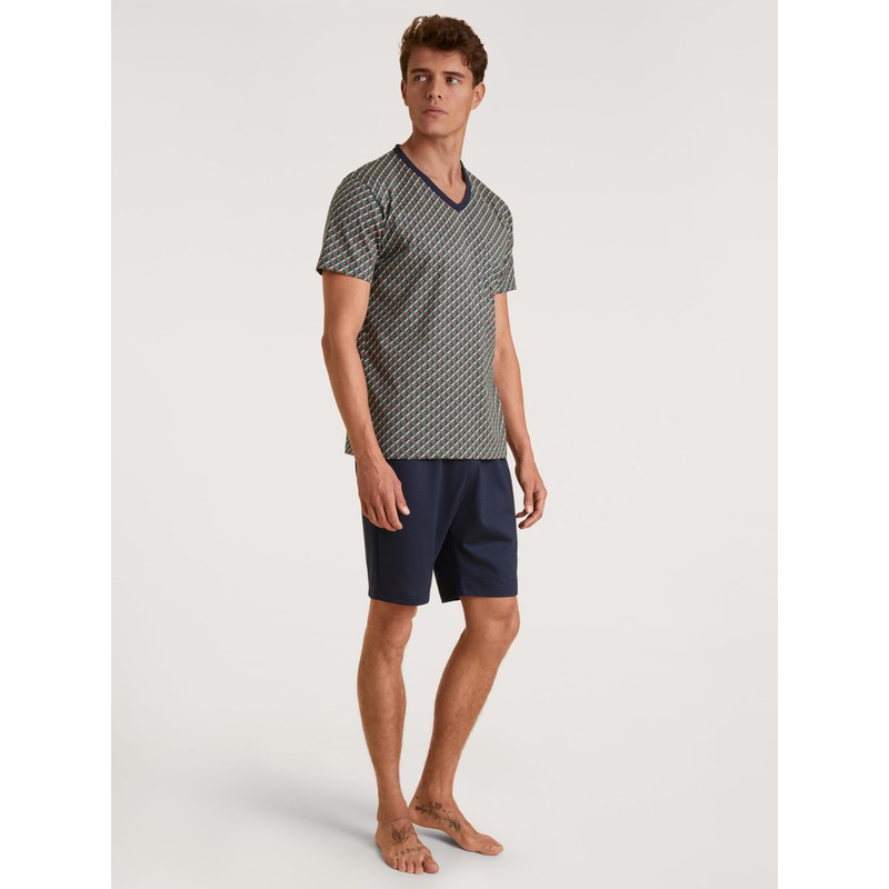 CALIDA Relax Imprint Men's Short Pyjamas, Made from 100% Cotton, Easy Care, Elastic and Dimensionally Stable, in Single Jersey, Laurel green