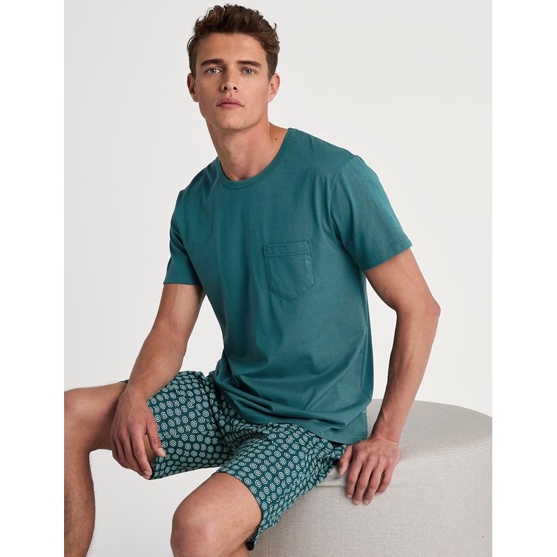 CALIDA Relax Imprint Men's Short Pyjamas, Made from 100% Cotton, Easy Care, Elastic and Dimensionally Stable, in Single Jersey, Philo Green, 56