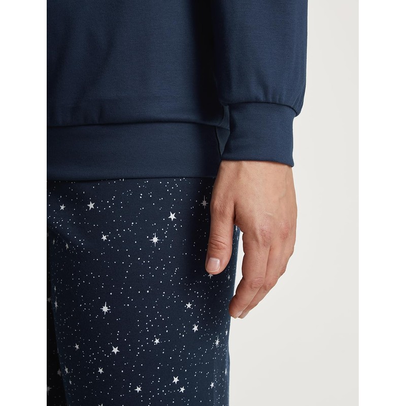 CALIDA Sweet Dreams Women's 100% Cotton Cuffed Pyjamas with Fabric Covered Elastic Waistband, Peacoat Blue