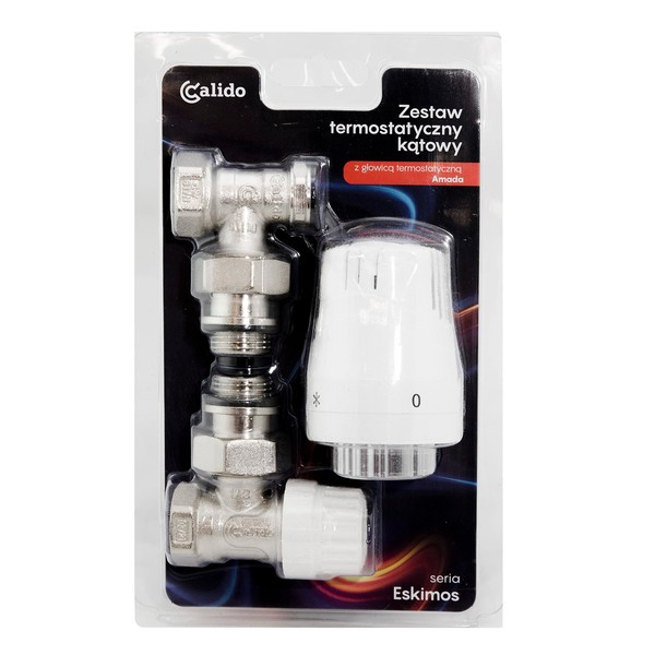 Calido Angle Thermostat Set Thermostat Head with M 30 x 1.5 Thread Inlet Angle 1/2 Inch with Presets and O-Ring Return Valve, Automatic Temperature Controller
