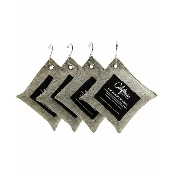 California Home Goods BAMBOO CHARCOAL AIR PURIFYING BAGS 4-200G & 4-HOOKS SENSIBLE HOME SET DEODORIZER