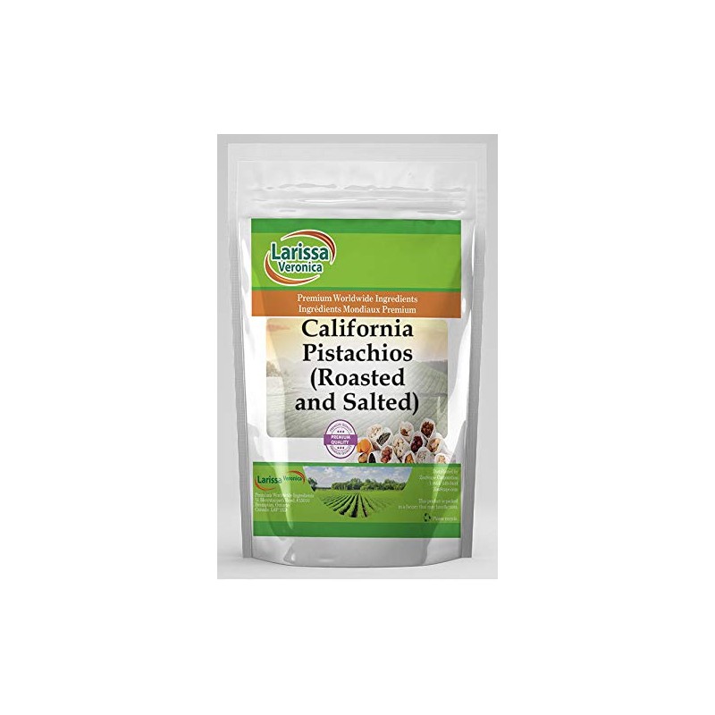 Our California Pistachios are in their natural shell, and are roasted and salted. Pistachios, which originated in the Middle East and Central Asia, are a relative of cashews. Our gourmet California Pistachio Nuts are grown right here in the U.S.A.! Pistachios are terrific eaten on their own, but they are also widely used in cooking and baking. - 3/4 cup (76 grams) of unshelled pistachios is approximately equivalent to 30 grams of shelled pistachios - Larissa Veronica is an exclusive line of natural premium-quality products that use only the purest and finest ingredients from around the world. Larissa Veronica is hallmarked by the highest possible standards of purity, stability and freshness. All of our products are prepared with the highest elements of quality control, from raw materials through the entire manufacturing process, up to and including the moment that the bottles or bags are sealed for freshness and shipped out to you. Our highest possible standards are certified by independent laboratories and backed by our personal guarantee. - Larissa Veronica strives to make all products affordable and we are constantly researching the market to maintain our affordability and to look for new ways to serve you and the ones you love. Larissa Veronica has become a trusted household name for many families. - Larissa Veronica is packed in tamper- proof, food-grade, recyclable containers. - ZooScape is proud to be the exclusive distributor of all Larissa Veronica spices, snacks, foods and ingredients in the United States, Canada and around the world. - Store Dry at 35-45 F. Vegan. Kosher for Passover. Product of U.S.A.