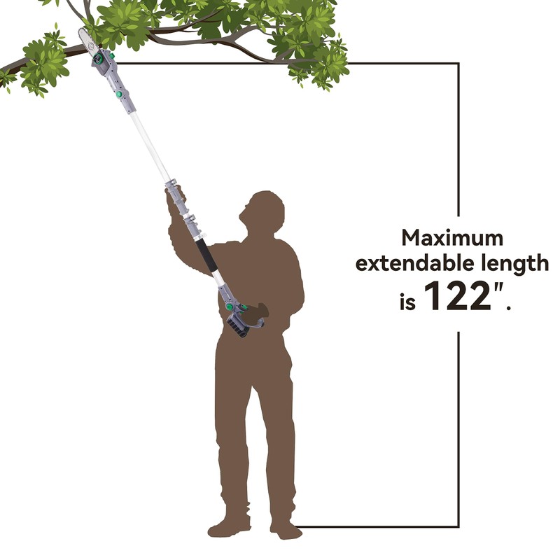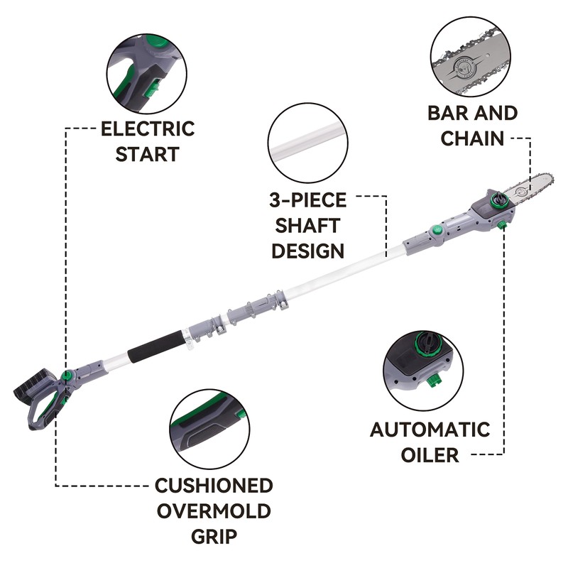- MAINTENANCE FREE - the polesaw is virtually maintenance free, with no gas, no oil, and no emissions. It starts instantly, is quiet, and delivers the power you need